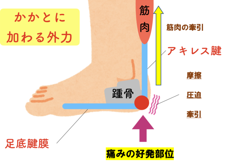 特に踵骨(かかとの骨)は、急激に成長する骨のひとつであり、その周囲の筋肉やアキレス腱が骨の伸びに追いつかないことで、結果的にかかとの骨に強い牽引力が加わります。
